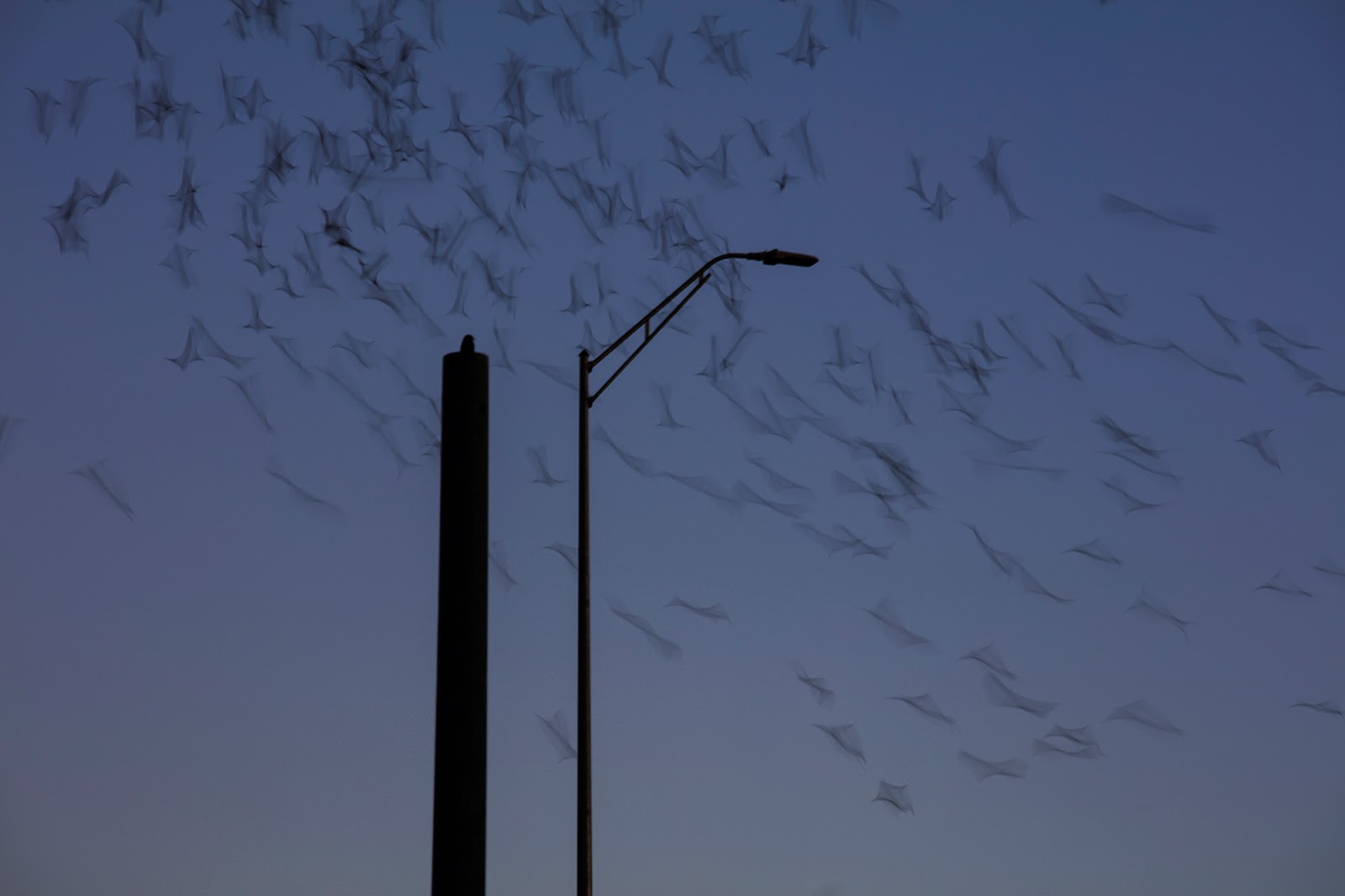 The meeting time was just about sunset. After I had gotten lost and all but given up on finding the spot, I drove along the highway along a route I thought would take me back home. As luck would have it, I wound up driving right past the little auto parts store and managed to get there just in time. It was not quite sunset and the bats had not come out yet, so I parked, got out my trusty tripod, and joined up with the crew. I wasn’t expecting much, as this was more of a social thing for me, but I wanted to check out the nearby bat bridge and also maybe get some early evening/dusk type of shots if I could manage it.