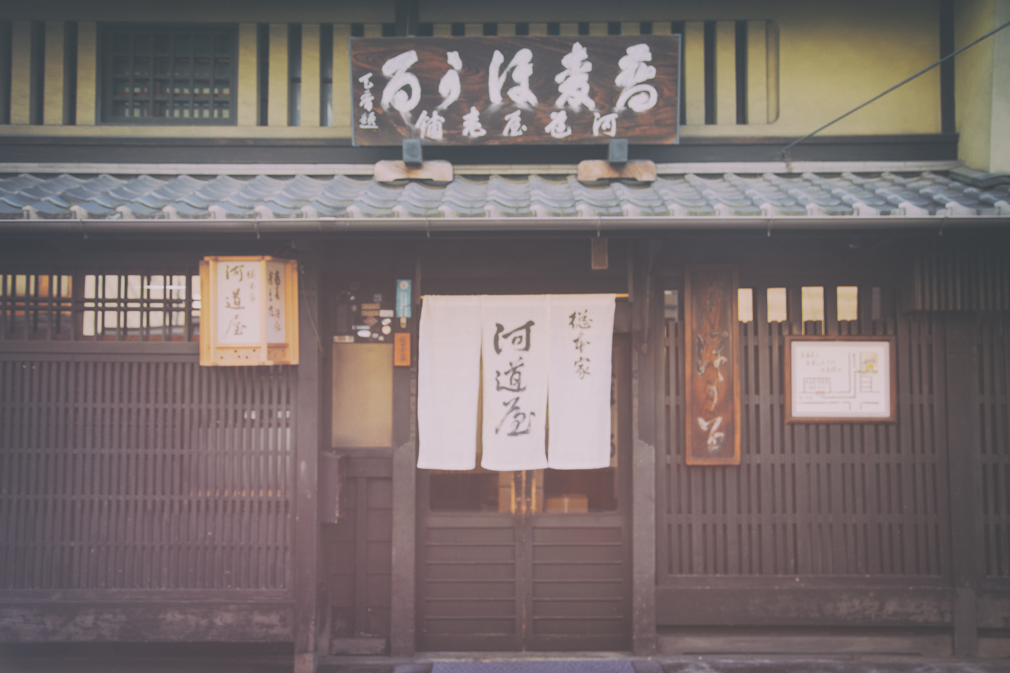 - “Storefront,” this one on Sanjo Dori in downtown Kyoto, near the place we routinely scored frozen custard. I will forever look at this image and think about frozen custard from Bel Amer, yes, it was that good. This is a little shop down the way from that place. I loved the symmetry.